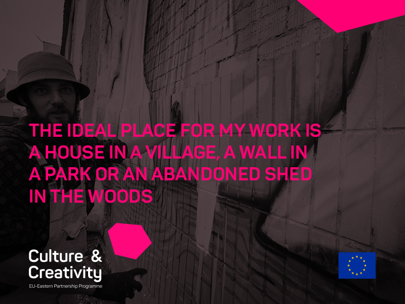Personally, I’m attracted to street art due to its scale. The image is depicted on building facades. This means that the artist bears great responsibility for his work. The street for me is just another platform for the realisation of my ideas. Its unique atmosphere is precisely what attracts me to it.